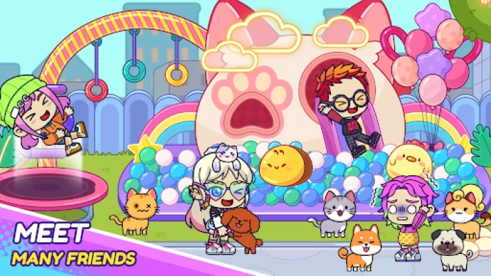 This is such a cute game. ☺ I think there could be, like, more buildings maybe? And custom clothes. That would be cool. But overall, this game is AMAZING!!! Keep improving!!!☺️🤩also there isn't many glitches!!! Great! It is also good because i can't fit the actual Avatar World on my phone, and this takes up much less space. 😁 maybe there should be Custom houses, and furniture creators?
