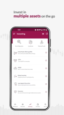 Excellent investment app. for trading in securities. Some features like share price charts and financial data would improve value.