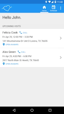 You do not receive push notifications when something is taken off or added to your schedule. This means the office has to send you a message. This can get very time consuming when you are adjusting schedules daily. You can't sent messages to your office staff, unless they send you one first as there is not contact list to work from. The location detection is terrible, standing in the clients living room connected to their network connection and get and error out of location area.