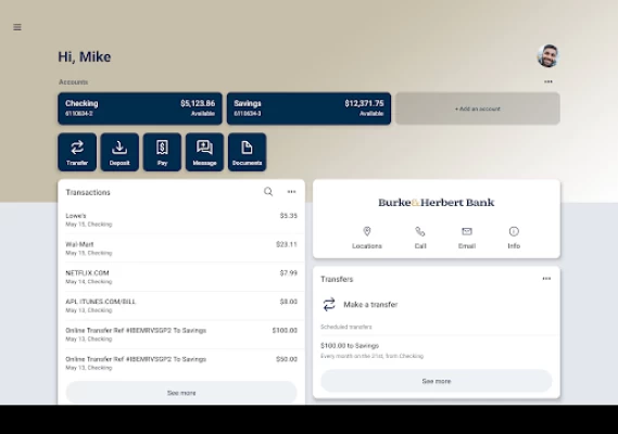 Burke & Herbert Bank is an excellent bank already and their mobile app is great too with easy and uncluttered design. It is intuitive with hardly any learning curve. Customer service is a delight to deal with on the rare occasion when needed.