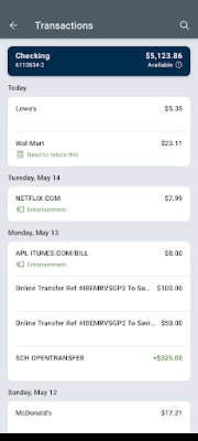 The user interface is nice. I would like to see the negative transactions in red with a negative symbol to the left of them. Debit alerts that come through the phone or the in-app notification are very delayed. If I make a transaction, I would like to see my available amount. Sometimes, when I purchase something, it looks like I have more money in that account than I actually do. So, that can be a little surprise to some people and some people don't like surprises when it comes to their money.