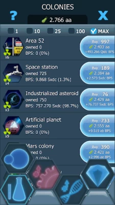 definitely one of the better clicker games, no doubt abput that. But a couple of issues are holding it back. Firstly, unreliable gem payment for actions. an improvement would be if you could monitor progress/check up on requirements and submit queries if gems dont turn up when they should. secondly a different counting system so its easier to calculate cost vs benefit between colonies. it would make the game more entertaining but its just too tricky with the correct names as it stands.