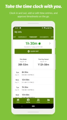 App seems to always be having issues, and its servers are down way too often, it's says something about a panda pushing to many buttons again, like 15 times alone today, and It requires me to sign out and sign back in everytime to be able to get the app to work for a couple minutes and then I'm right back at it next time I launch the app. I definitely don't recommend it, especially if it never works for clocking in when you need it, too.