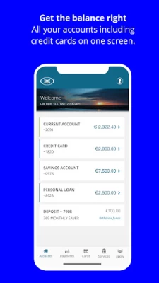 Becoming nearly unusable. When signing in, the screen takes ages to load despite strong wifi. Compared to other bank apps, design and functionality poor. Transfer cut-off times of mid afternoon and no transfers on weekends plus lack of sepa instant payments a huge disadvantage. Overall , it's a good way to monitor your accounts but not the bank in your pocket that others provide.
