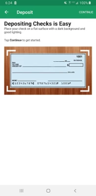 Taking photos of a mobile deposit needs to use the built-in flash, and automatically detect when the check is framed correctly, then automatically trip the shutter. I appreciate the app using fingerprint recognition instead of having to type a password. The app also needs to do away with the multiple "Continue" screens just to get to the "Deposit Checks" screen.