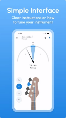 This app is great. It automatically knows what string you're trying to tune and there's no jargon or subscription. It's free and simple to use. It's amazing something like this exists