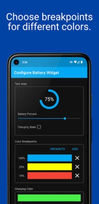 This is a nice simple battery widget with enough customization options to match it to my phone's theme perfectly. Includes color customizations for charge amount is a nice touch. This is perfect for displaying charge info without any of the extraneous BS functionality of so many other apps. Great work with this app! Make more of these!!