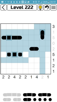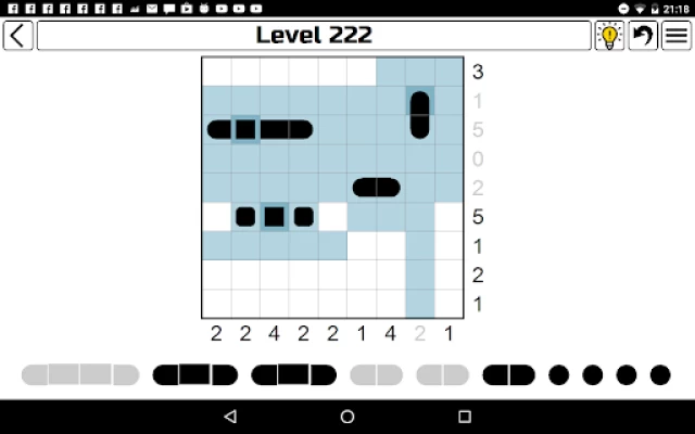 Fun game. Would like to see alternate color options. White and light blue are sometimes too close in color. Would be fun to have a "build your own" setting. Choose the max size of boat and a board is created. "Play next in current difficulty" would also be nice.