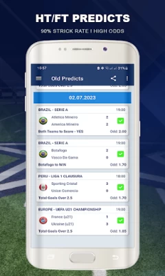 This is a good app for prediction of sports event outcome. Congratulation for high odd HT/FT predictions with high accuracy, I have used this app for about a month and don't regret downloading it. I urge more sport fans to download it.