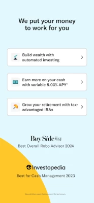 The app is clean, easy to use. I'm able to set up an automatic deposit, check my balance, account performance, etc. I had a question a while ago, and ngl i was on hold on the phone for a while until i gave that up and emailed them. To my surprise they were very punctual in replying back and extremely courteous and helpful. So phone isn't the best but customer service was great over email, overall positive experience so far.