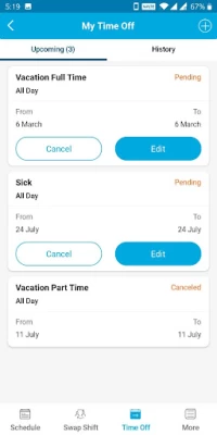 Doesn't seem to be on the correct time. About an hour or two before the shift starts, options like "call off" and "offer shift" disappear and the app acts like the start time has already passed, and available shifts for that day won't show up anymore. My managers told me I'm lying so they've been no help getting the app to work properly. If I try to call off earlier than 2 hours before the app thinks the shift has started, it tells me it's too early to call off.