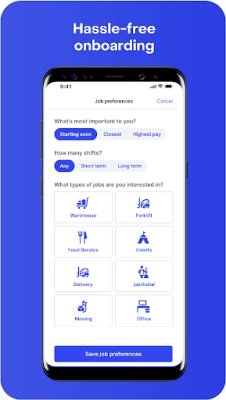 App spams me with the same message in my text and in my notifications. Also really annoying to search for jobs. If you look at a job and back out of it the entire list will scroll right back up to the very top. The search features are extremely lacking. A map how of the available jobs would be nice. And the most important thing is that you can't choose shifts that you are able to work in a block of shifts a company is listing.