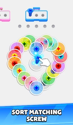 In this game, players face a board composed of complex shape and randomly placed Screws and Pins. Your objective is simple: screw and match all the nuts and bolts into the right boxes. It might sound easy but it won't be as easy as you think. Each level comes with a different layout and the difficulty will increase after each level, requiring players to constantly adjust their strategy. Only 1% of players can reach to the top and finish all the puzzle, can you be one of them?