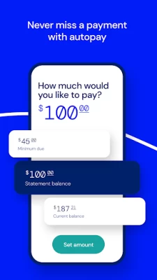 Great app. There is no lag like other credit card apps. It was surprisingly easy to navigate and complete my autopay setup. My only suggestion would be to provide an option to pay "a different amount" when setting up autopay. I could only pay the minimum due or entire statement balance within the autopay setup. Otherwise, the app is great!!