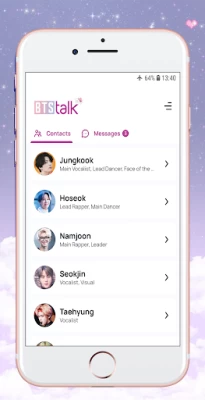 It's a great app even when I not actually talking to BTS 💜 it still feels like I'm talking to them but it'd be nice if we could type our own messages and that the members don't repeat their messages but although it's very nice app keep up the great work 🙃