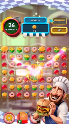 This is a great game the first time the chef jumped up from the bottom of the screen startled me that I dropped my phone π LOL Really like that I can choose to see a ad for extra moves so far it's the best 3 match games I have played πβΊοΈ
