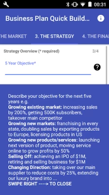 I am blown away! This app is awesome! After downloading so many that either dont work or have so many ads this is a breath of fresh air. It literally asked me every question you would think an effective business plan would entail. Did I mention that it has helpful tips (?) you can click if your not sure what to plug in or need a better explaination. Im excited about the future. thanks!