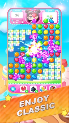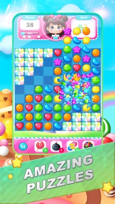 Match, pop, and blast candies in this tasty puzzle adventure to progress to the next level and get a sugar blast! Master match 3 puzzles with quick thinking and smart matching moves to be rewarded with sugar bonuses and tasty candy combos.