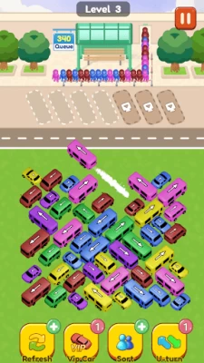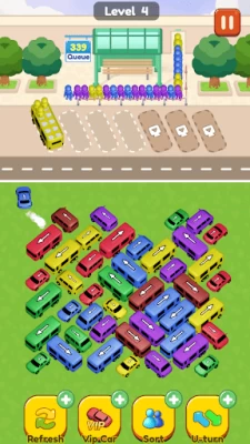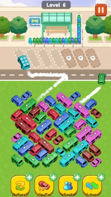 Sort the correct vehicles by your strategic tapping. The rescued vehicles will automatically enter the parking space to wait for passengers!