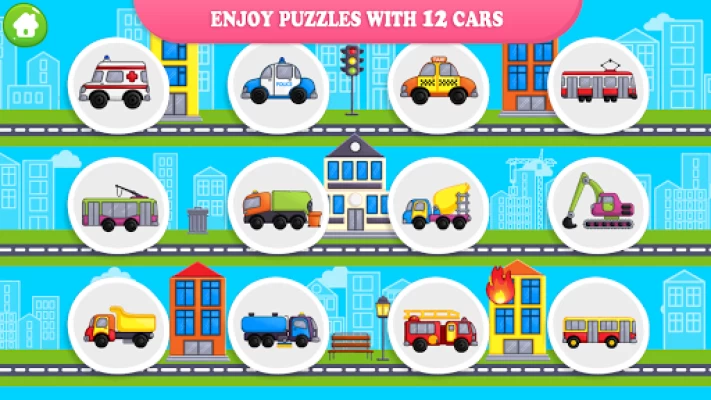 Car Puzzles for Kids is an entertaining and educational app for kids that contains 60 themed tasks and activities with cars: jigsaw puzzles, puzzles, matching shapes, coloring pages, and backgrounds for decoration.
