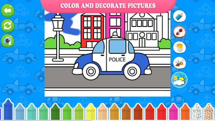 Coloring and Decorating - Draw with your fingers, decorate colorful backgrounds with beautiful stickers, and decorate coloring pages with cars and trucks. And when your masterpiece is ready, you can save it in the gallery and share it with your friends and family.