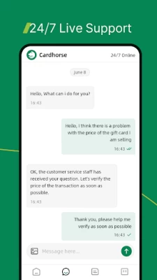 Very great app. I was afraid I wouldn't receive cash due to a lot of fraudulent gift card apps out there. But cardhorse is different, didn't even take time to exchange my Amazon gift card and they exchanged at good rate. Also they have a great customer support, the support was very helpful. This is a great app for first timers who are looking for a reliable app for gift card exchange.