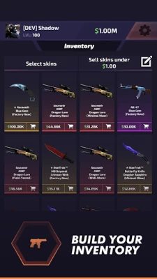 Great game. I wish that the DEVS would add a market system for the players to buy and trade. And sometimes, when i do a trade up and get i nice skin, it disappears and nowhere to be found. I hope that they can fix it. Overall, this game is great and addicting ☺️