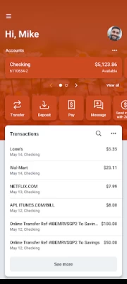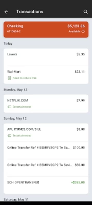 For a banking app, this app is terrible. I've had it for a while now and I've noticed that payments or purchases made from my checking account don't show up for days. Prime example, made an extra principle payment on my mortgage which my mortgage account shows fully cleared already.... That payment was made 6 days ago and I'm STILL waiting for it to debit from my account in the app. People who rely on there bank account to show most up to date information, DO NOT use this app.