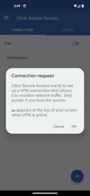 Does the job, but needs some obvious UI improvements, eg ability to disconnect directly from notification tray. Remove the notification that I can't swipe away when a successful connection is established (I need to access my Chrome address bar straight away and the notification is in my way). Stay on same login screen if I mistyped my password.