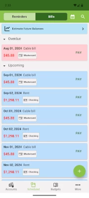 Excellent, with great updates recently. Shows you what your balances will be on future dates as long at you enter the transaction data. I still want integration with Google Calendar so that your Jived (=cleared) Balance and Overall Balance are posted to your Google Calendar, along with Bill Reminders, so that you can see right on calendar how much $$ you will actually have in your account (Overall Balance) on future dates, along with where the bills fall on your calendar. But, make no mistake, this is an excellent app and it's the website, and the Android app's syncing with it, that really make this great.