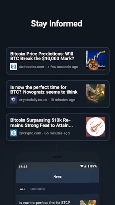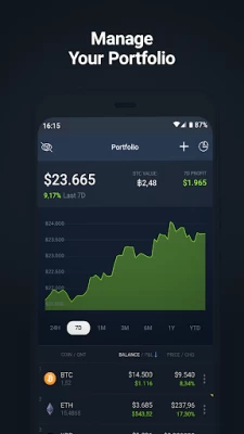 Great UI. Portfolio integration that doesn't want to control/access your exchanges. Not every coin is listed, but I'd say 99.9% are. That's better than any other apk that I've found. Charts could use some enhancements and all the exchanges that each coin is listed are not complete. Overall, a lot of info that's easy to access..