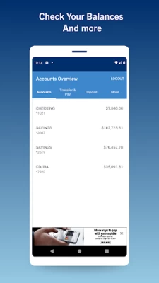 Do not rely upon this App for anything important (like banking). If something fails in the background after you are done using the app, you will get a "pending" notification but will never get a subsequent notification that something failed on their end. This is especially problematic with deposits because of a "deposit pending" notification. If something fails after that, you will never know unless you constantly refresh for the next few days and happen to notice that the deposit never posts...