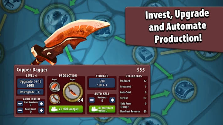 Didn't expect to like the game as much as I do. No forced ads, which is a breath of fresh air. Fun and complex series of inter-connected crafting jobs. Balancing output, income, missions, and leveling is an interesting challenge. I though the tiny UI would be an issue, but it's surprisingly fine. Did have some issues with UI for 10x/50x/MAX freezing and not working. Also wish you could pause the fame missions/ especially during the early stages when you need the money/resources to grow.