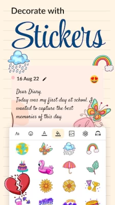 I wanted to like this app, I journal everyday and thought this would be a convenient option when on-the-go. My complaints are with some features: the stickers don't set. When I save an entry & go back to edit, the stickers I use are in another part of the page with an "x". I find it pointless to add one now. The graphics are also too cartoonish. I have used other apps whose graphics were more realistic, this option gave my entries better personalization. Not bad but seems it's more for teens.