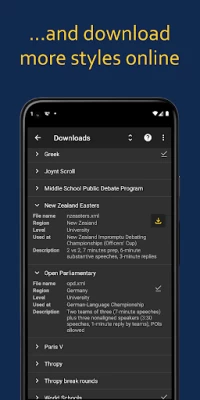 Great app!!!! This is exactly what I was looking for and used it with great success in class today. Made a custom debate style for my format, it was easy, straight forward and quick. The github site was an excellent reference point for building the custom style. Thanks for developing this.