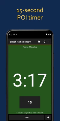 It does what it needs to without any hiccups. The one feature I think would make this app perfect would be having the ability to set a custom format, so that if you're using a format that isn't supported, or maybe you're using reduced timing for an unofficial debate you would still be able to have a good experience with the app. A more pleasant looking UI would also be a nice touch, but it's certainly not something important, unlike what I mentioned above.