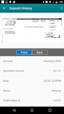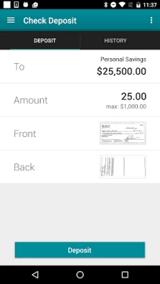 It's a good app if you just need to check your account. It used to be far better, but since the update, the mobile deposit feature no longer works. Presumably, this is an issue with compatibility that needs to be worked out, but as it is, I haven't been able to deposit my checks without traveling across town to the nearest branch. Like I said, it's still good for checking statements on the go and such, but it's not very useful for anything else.