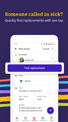 I enjoy this App because it's easier to see your schedule and to clock in and out of work and for breaks! Asking for a day off is also a plus and switching shifts with someone! Before we would be waiting in line taking turns to write down our time we started work and at the end of the shift also breaks, it was a pain! I recommend this App it's awesome!!!
