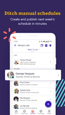 i work from home and we started using this earlier this year to keep track of hours. pretty handy and fairly easy to use, especially since you can also clock in and out from their website if you've logged in since some people may still not have a smartphone, good call on their part. one thing I do agree on with some other reviews is that it would be awesome if there was an option to add an alarm feature/function to alert you at some point before your shift starts to give you a heads up.