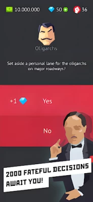I understand ads can give the devs money but please turn them down. Every button leads to an ad. But other than that, it's a great game. You receive one of six factions and say yes or no to what they want, and if you run out of money a revolution happens.