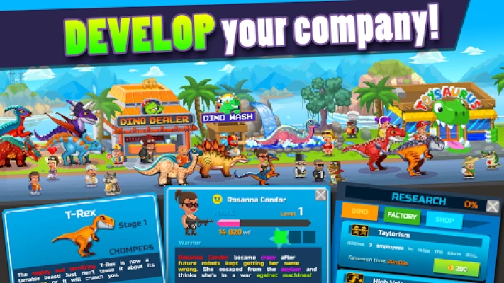 Fun so far. The dinos are colorful, lots of variety, and not too difficult for budget players. The pixel art is cute, especially if you're into that aesthetic. I'm not a fan of how the shops are set up. Once you put one down, you can't upgrade it to a bigger shop (only built separately), move or sell / demolish it. It's there forever, so if you don't like the layout... well, too bad, you're stuck with it. =/ Might be worth considering a work-around for this issue, if possible.