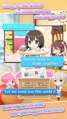 There are so many cute outfits and the dialogue is cute. There is both a normal and a "light" version. The light version would be reccommended for those who want less raunchy themed outfits while the normal version does contain revealing outfits and such. There is plenty to do in the game and there are constantly events so it's hard to become bored with the game. Update: Had to drop the rating. New update/setup is not as user friendly as before and you gotta dig and guess to find some features.