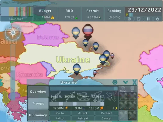 •Expand your territory by military occupation to gain more power, but do not spread too thin too fast or your empire will crumble even faster. •Analyze and manipulate diplomatic relations to invade countries while avoiding creating too many powerful enemies. •Use your country's resources to sustain your research and military campaigns, but if you spend too much your land will be impoverished and you will fall behind your rivals in the balance of power. •Determine your country's economic policy and reach a high economic growth, which might allow you to outpace your rivals in the power race even without using military force.
