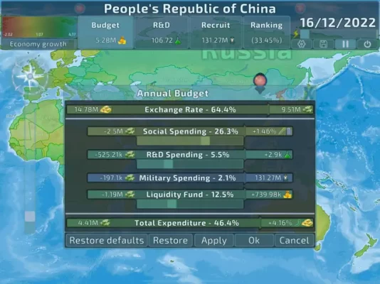 Geopolitical management game with organic borders and a streamlined gameplay.