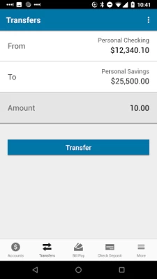 It does pretty much all I need. I really like depositing checks via cellphone vs. having to go all the way to the bank, especially if I get a check when the bank is closed. The check shows up in my account almost immediately. Also, you can transfer funds from checking to savings or vice versa. This app is incredibly convenient.