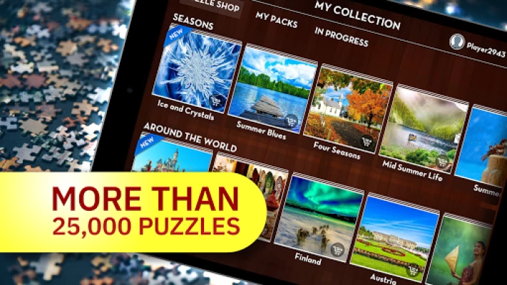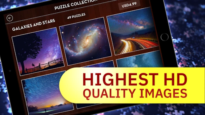 This has been an enjoyable app until recently. Now new installs (on multiple devices) of version 5.0.0, can't "restore purchases" previously made, and I was charged for a new purchase, then told the purchase had failed, and did not receive my puzzles; after a couple of restarts, "restore purchases" installed that puzzle pack, though I still could not "restore" it to a second device, though I was told I coulld not purchase it because I already owned it.. On an old device with v4.5.0, and a newer device with that version sideloaded, attempts to purchase fail with "The item you requested is not available for purchase." On the sideloaded device, "restore purchases" restored some, but not all, of my prior purchases. So you may want to try this out, but be cautious about puzzle-pack purchase attempts until there is a post-v5.0.0 update. In the meantime, the excellent "Jigsaw Puzzle Epic" by Kristanix may be the app you were looking for anyway.