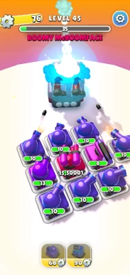 Merge your tanks, upgrade your artillery 💣, and crush enemy forces to advance through the levels! Build a powerful army with various types of tanks — from standard cannons to devastating atomic launchers ☢️.