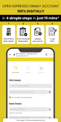 The account opening was real fast. What is good about espresso is the seamless sync that happens between the mobile, web and Binge. The desktop application is very good. These days very few brokers offer desktop application. It's a big positive. However, the chart integration in the web is not good. Make it more like fyers if you can. Rest is good.