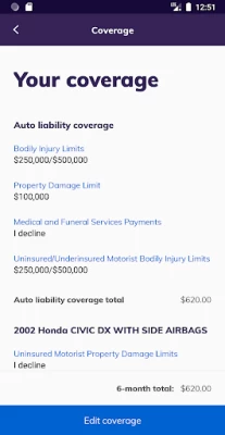 App will make your life so much easier! UPDATE: I have now used this app for almost a year and I still stand with my first rating. 1) App keeps me up-to-date anytime i need it without having to call customer service. 2) Easy to use and request for roadside assistance, which I am forever thankful. 3) My cards are printable with just a tap. No more waiting for mail. 4) Gives me a breakdown of all my coverages 5) I was able to easily choose and change my coverage with just a tap :)