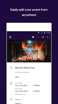 It's pretty convenient, but once an event is saved it's difficult to make any changes. Haven't had any other issues, but since this issue is so big I could only justify a three star review. The location of my event changed so I changed it on the app. Took a real long time because every time I changed the address, the app would change it back to the first address I saved before I could tap the save button. Unfortunately, even after I made the change, the map still showed the original address on Eventbrite. Needless to say that caused issues